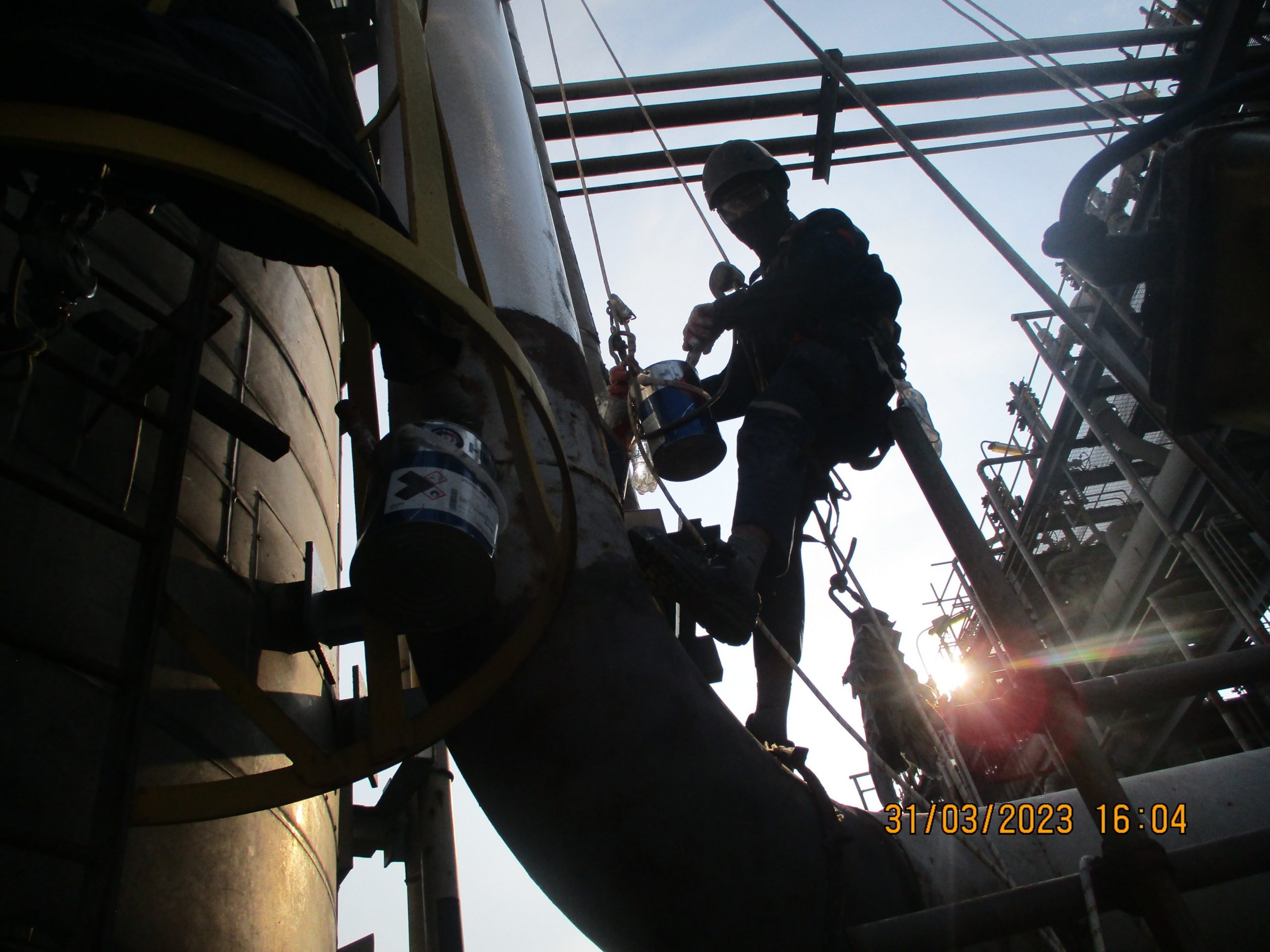 On 05/04/2023, PME finished the Insulation replacement and painting CUI for the Fuel supply piping of Tower T2103.The Tower T2103 is 158.4m hight, this is the one of the most dificulty Tower in BSR. The Tower very hight and has small outside Dimention so we get great shaking and dificulty when we working at hight. In this project the manpower must be has working at hight skill and insulation & paiting skill. PME is one of the first compny in Quang Ngai provice in rope access training. The first employees were sent by the company to train in Malaysia since 2015, and now PME has many ROA level 3 as well as Level 1 and 2 personnel.